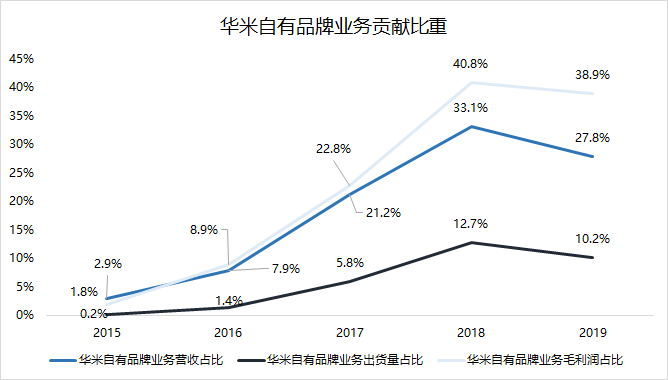 在頂峰的2018年,華米自有品牌以12.7%的出貨量占比貢獻(xiàn)了超過三成營(yíng)收與四成毛利潤(rùn)。