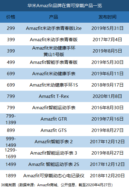 Amazfit 2019年新品發(fā)布數(shù)量多、頻率高,在保持品牌曝光度、快速覆蓋300元~2000元全部?jī)r(jià)格區(qū)間的同時(shí),也不可避免地存在相近價(jià)位產(chǎn)品區(qū)分不夠明顯、新老產(chǎn)品內(nèi)耗的問題。